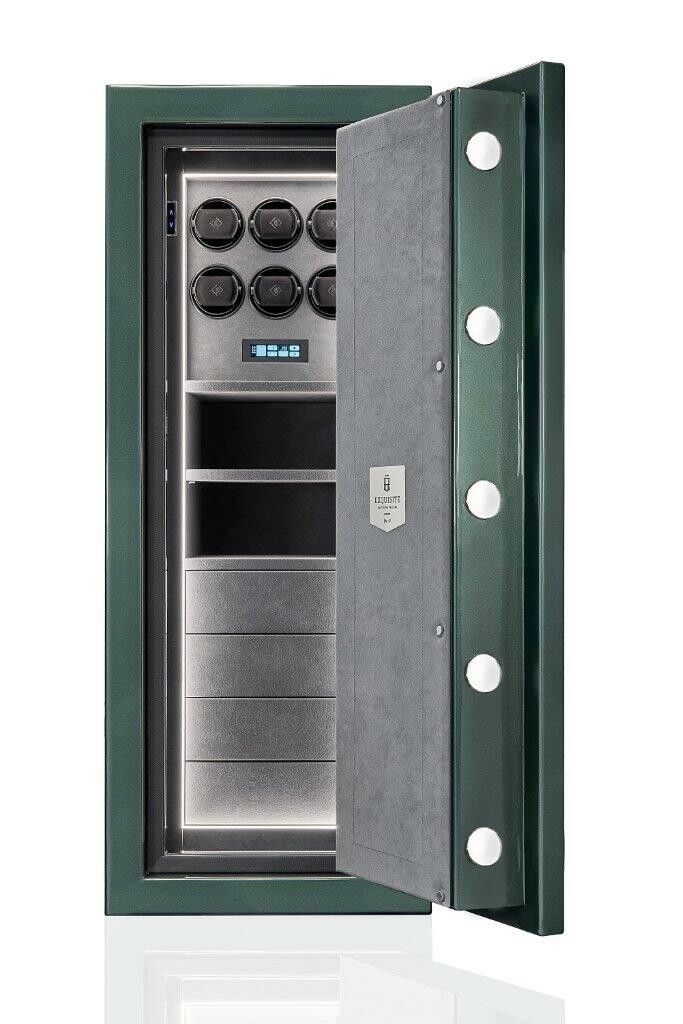 | Wyposażenie | - 6 rotomatów marki Benson X Hartmann, - 4 szuflady na biżuterię, otwieranie: „push-to-open”, - półka, - wnętrze wyłożone oryginalną Alcantarą w kolorze carbon, - oświetlenie wnętrza LED z regulacją natężenia |