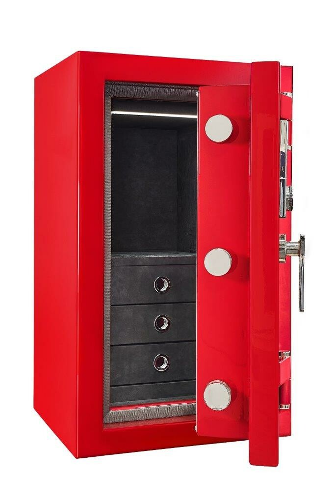 | Więcej danych o korpusie | - lżejsza waga dzięki opancerzeniu: płaszcz ze stali Siemens-Martin, wypełniony kamieniami Hartsinter i materiałem dwuskładnikowym, - stopień twardości Hartsinteru 9, punkt topnienia 2000 °C, - system zabezpieczający Nervoform w razie oddziaływania cieplnego, - zabezpieczenie przed rozsadzeniem i cięciem palnikiem |