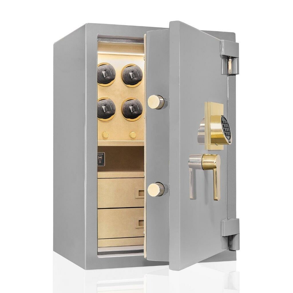 | Wyposażenie | - wnętrze wyłożone oryginalną Alcantarą, kolor 110 Amber Glow, - 8 rotomatów marki MTE, - 2 szuflady na biżuterię miękko wsuwane i wyściełane alcantarą, - oświetlenie wnętrza LED z regulacją natężenia |