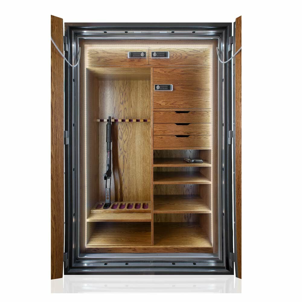 | Właściwości zamka | - kod 8-cyfrowy (numer użytkownika + kod 6 cyfrowy), - otwieranie awaryjne kluczem, - funkcja 4 oczu, - administrator + 30 użytkowników, - audyt 200 ostatnich operacji z datą i czasem (wymagane dodatkowe oprogramowanie), - funkcje czasowe, - okucie alu, - klasa B EN 1300. Sejf wyposażony w kompletną centralę alarmową EMA z zestawem czujników: - czujnik położenia rygli, - czujnik oderwania od podłoża, - czujnik otwarcia drzwi, - czujnik wstrząsowy |